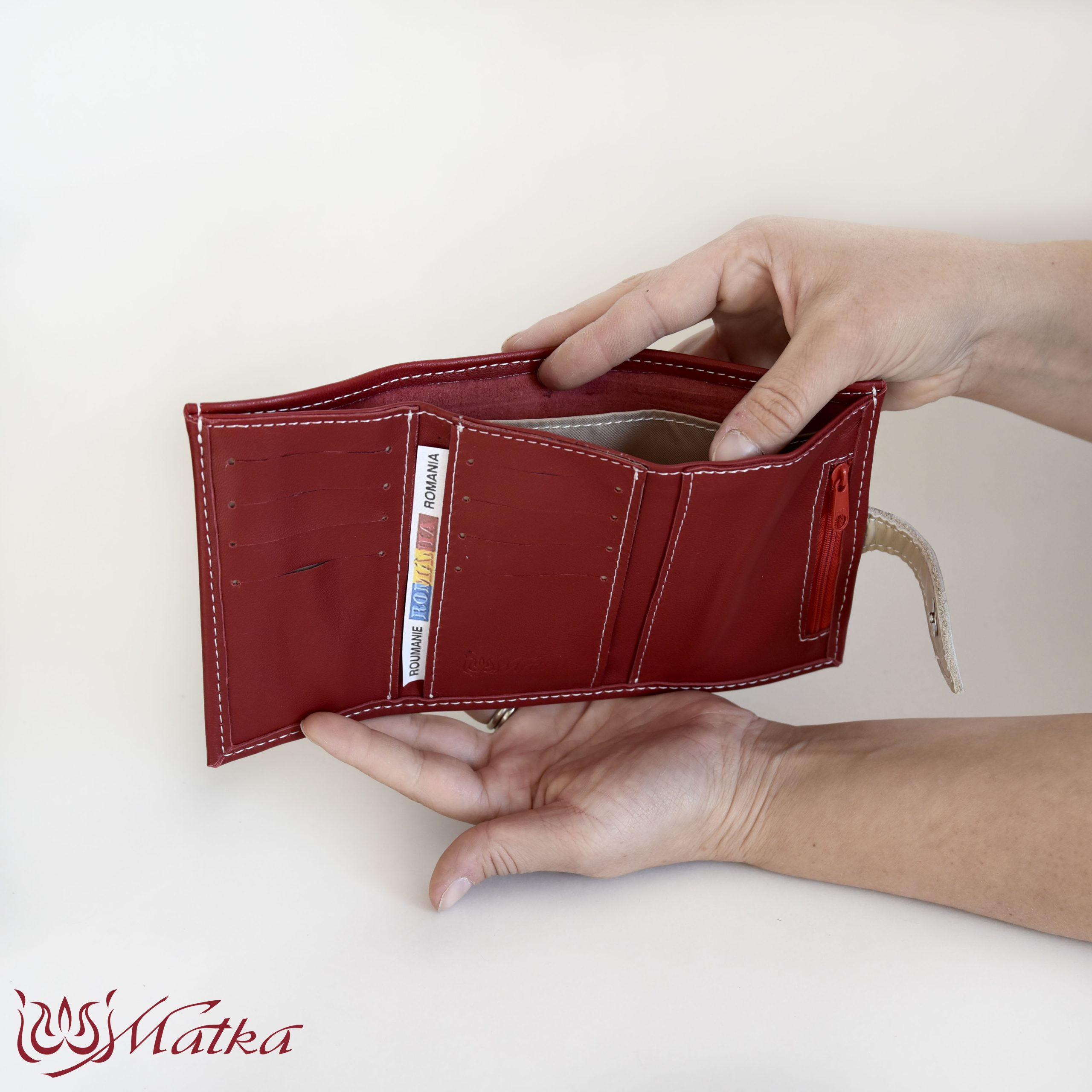 În interiorul portofelului se găsesc 8 compartimente pentru carduri, oferind suficient spațiu pentru carduri bancare, acte de identitate sau alte carduri importante. În plus, designul său permite să încapă cu ușurință și cartea de identitate românească.